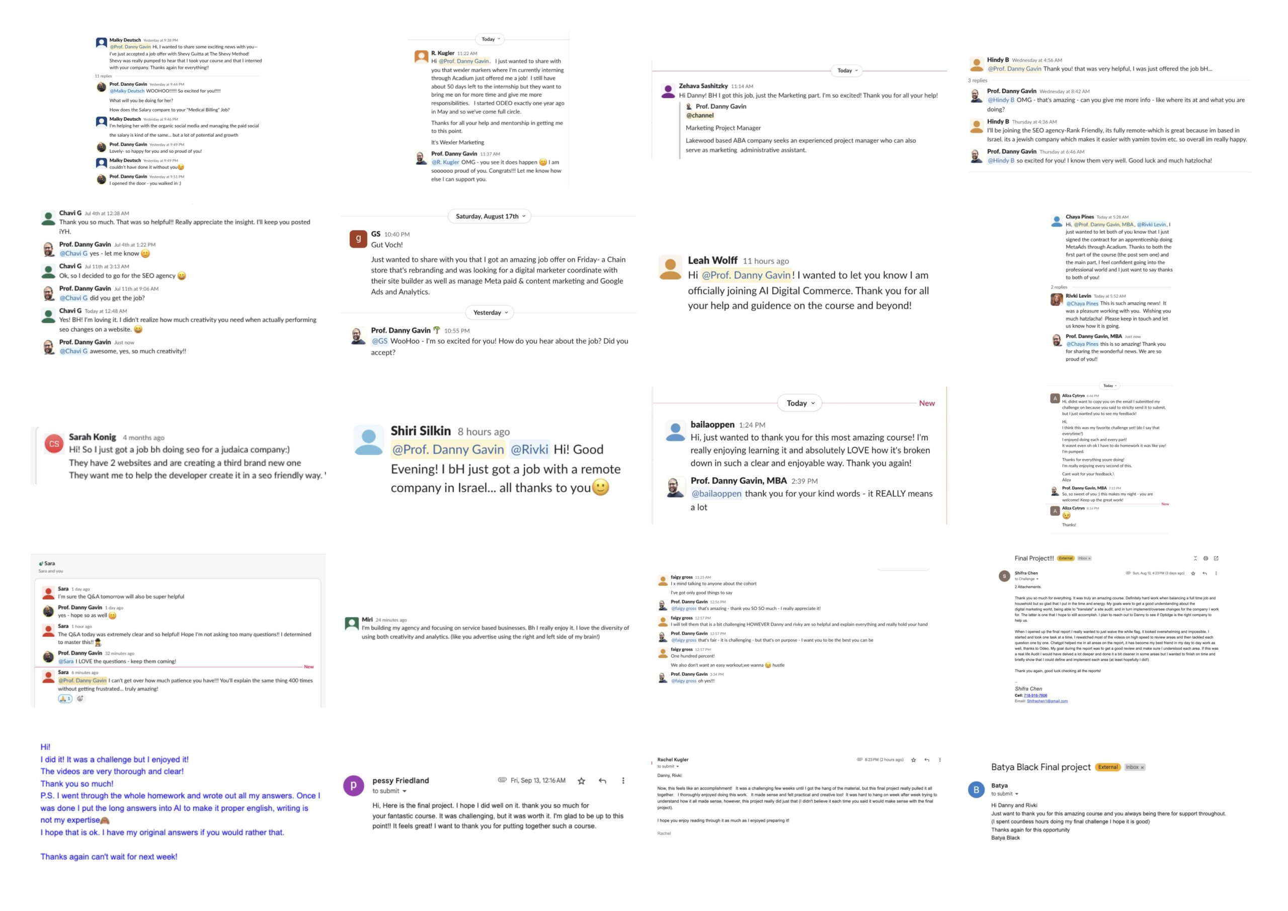 Danny Gavin isn’t just another course creator—he’s the owner of a thriving agency and university professor who’s devoted to student success. He’s seen it all, fixed it all, and optimized it all. His feedback is specific, actionable guidance from someone who does this daily for multi-million dollar clients. The all-encompassing support doesn’t end when you get your badge: ODEO grads get personal guidance from Danny & his team years after they’ve completed the course.